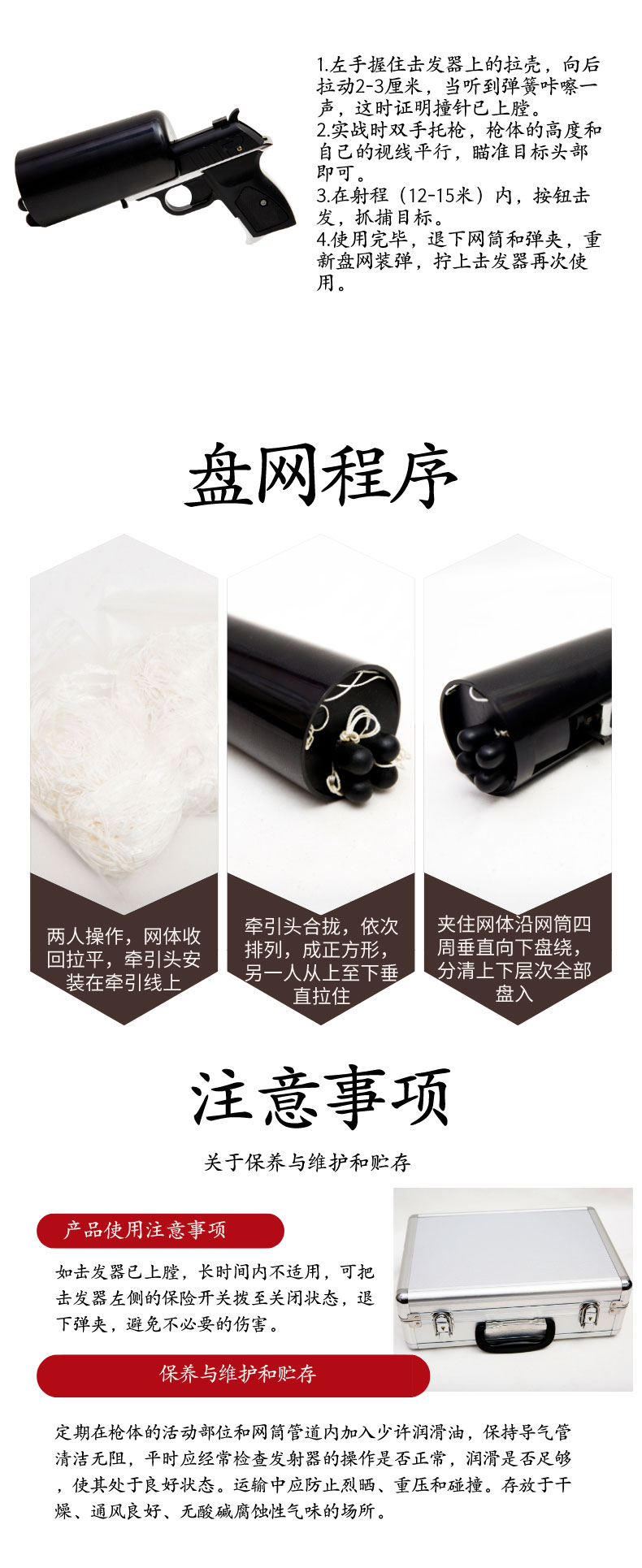 | 配件 | 空包弹20发。网筒2个 抓捕网3个 |