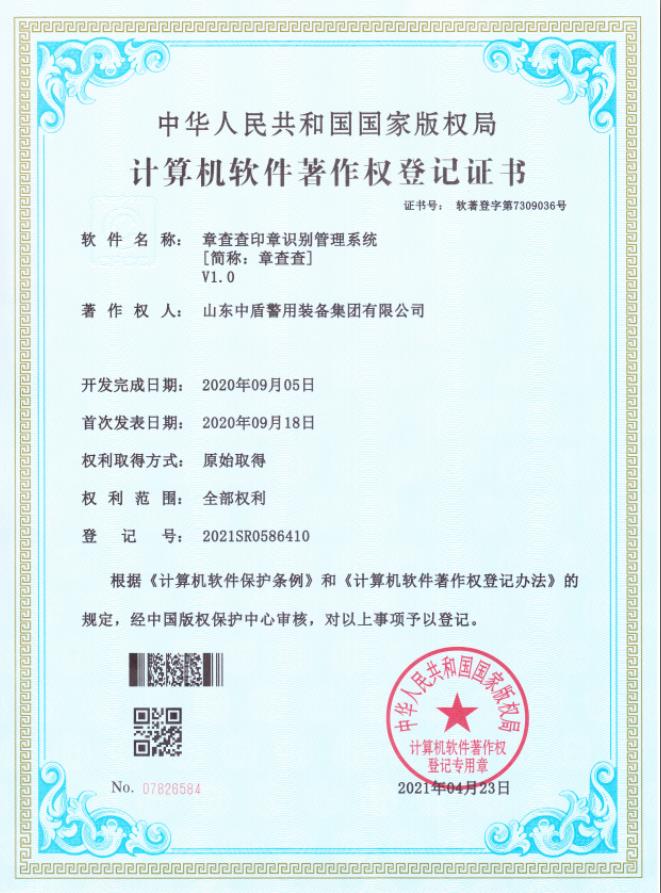 《计算机软件著作权登记证》是国家版权局为保护知识产权专为原创软件著作人颁发的产权证书。此次中盾集团获得的计算机软件著作权,不仅是自主知识产权软件产品的权威资质,也是中盾集团核心技术及企业雄厚科技实力的证明,标志着中盾集团技术研发及自主知识产权建设的又一新突破,同时也是公司致力于专业化技术的重要见证。