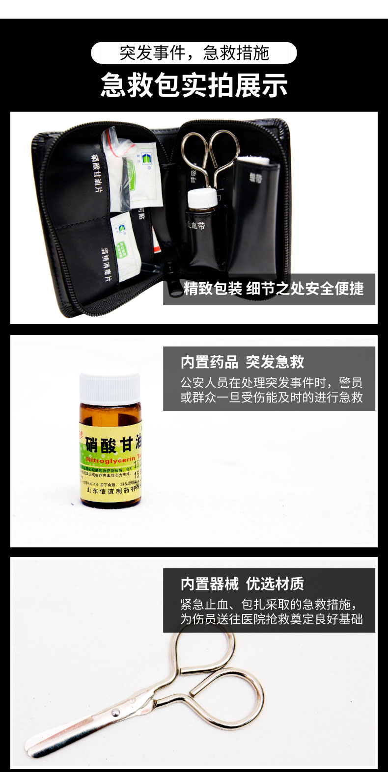 警用急救包为公安单警装备必配项目之一,是警务人员在执勤、训练中,受到轻小伤害时,需紧急临时救护的一种简易、便携式急救装备。