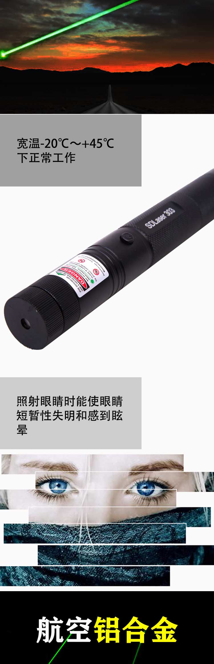 采用人眼敏感的532nm绿激光,照射眼睛时能使眼睛短暂性失明和感到眩晕。