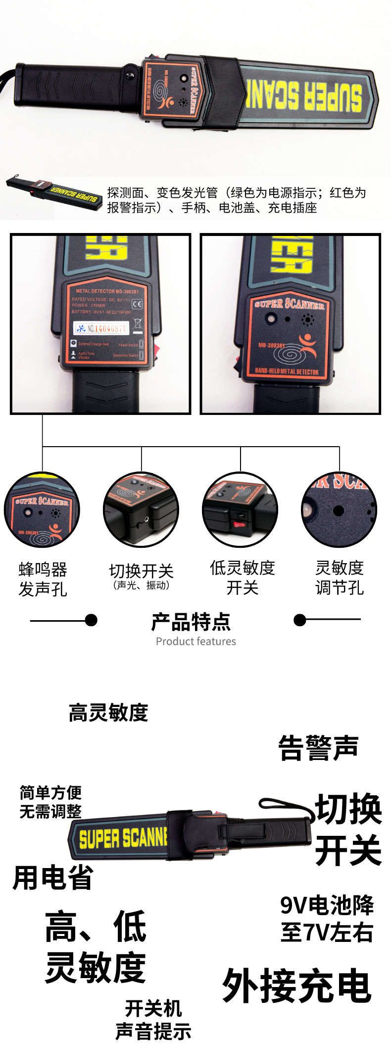 7、会根据金属大小产生不同报警音调,在嘈杂的环境可外接耳机。
