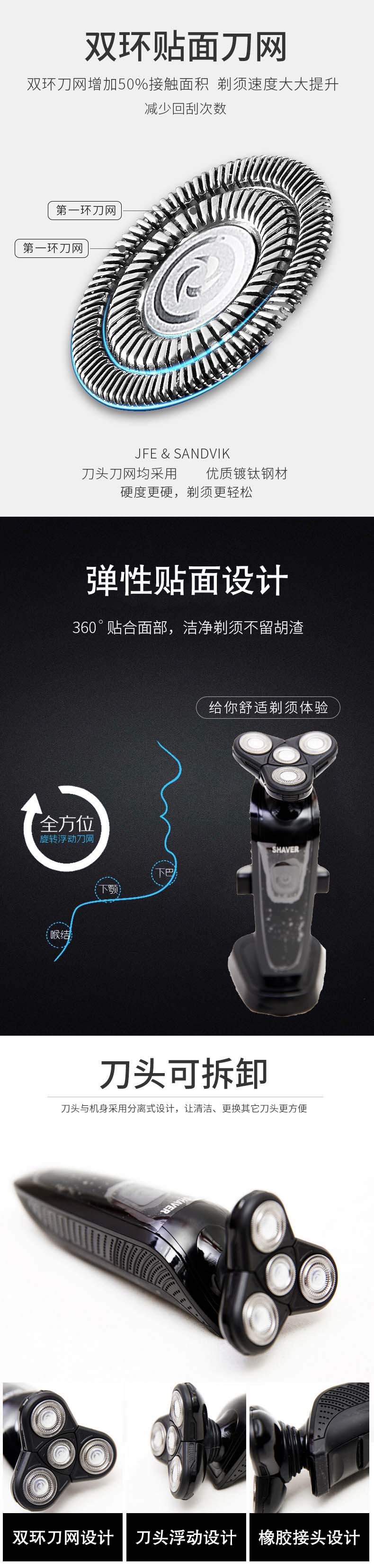 内含:剃须刀,充电器,梳子,剪发器,充电座,鼻修剪器,牙刷头牙刷头杠杆,刷头。充电时间约为16小时,充电之后30分钟再使用,可剃须,刷牙,修剪鼻毛,剪发