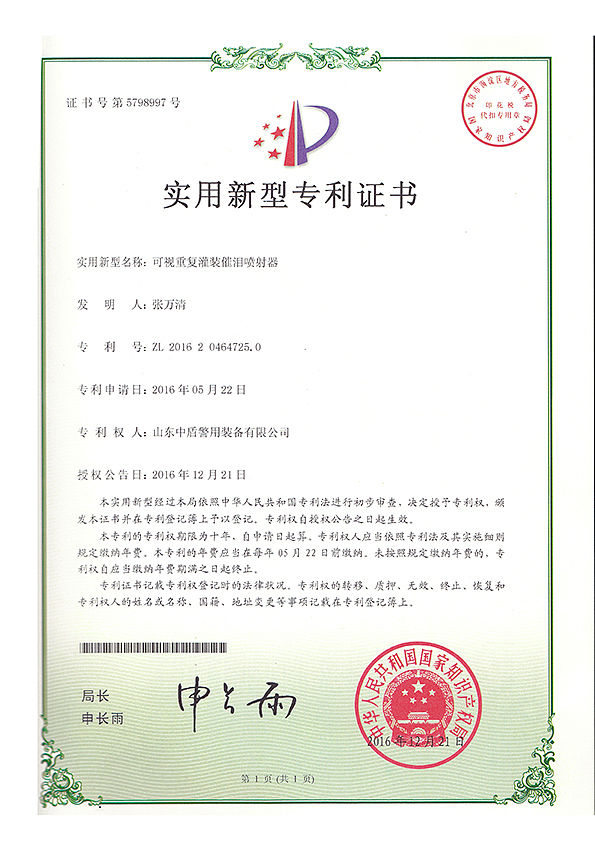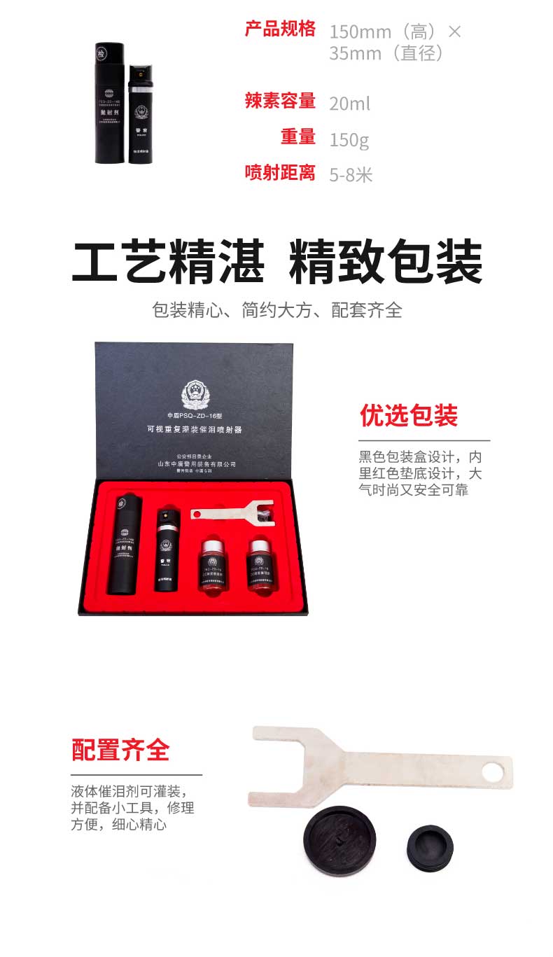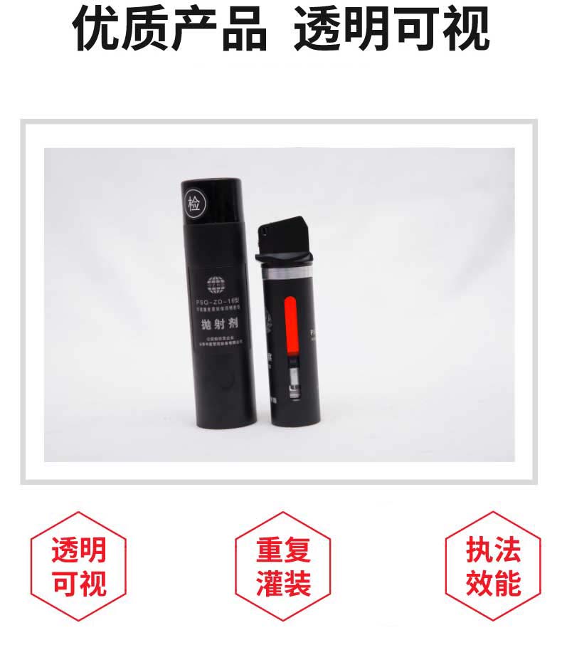 可视重复灌装催泪喷射器是山东中盾警用装备集团有限公司研制开发的实用新型产品,单警装备必配装备,可重复灌装,有效降低执法成本,通过透明可视检查,能确保催泪器可靠使用,只针对犯罪嫌疑人执法使用,喷射到犯罪嫌疑人面部,使犯罪嫌疑人流泪、打喷嚏,丧失抵抗力,不伤害使用人员及无辜人员,从而提高执法效能。