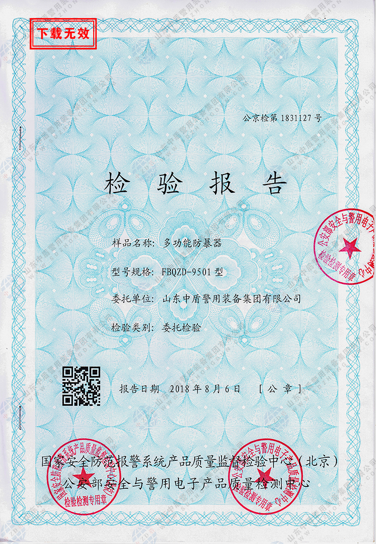 上一个: 金属防暴盾牌-检验报告
